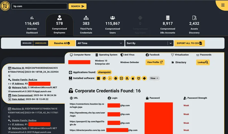 - Infostealer Data Feed: Access high-fidelity data from millions of compromised machines worldwide.