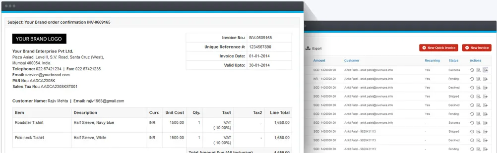 Everything about CCAvenue Invoice Payments is automatic, easy, fast and accurate. Create itemized invoices in multiple currencies in under a minute! Stop shuffling papers, and get ready for faster, easier electronic billing to make your business run more efficiently.