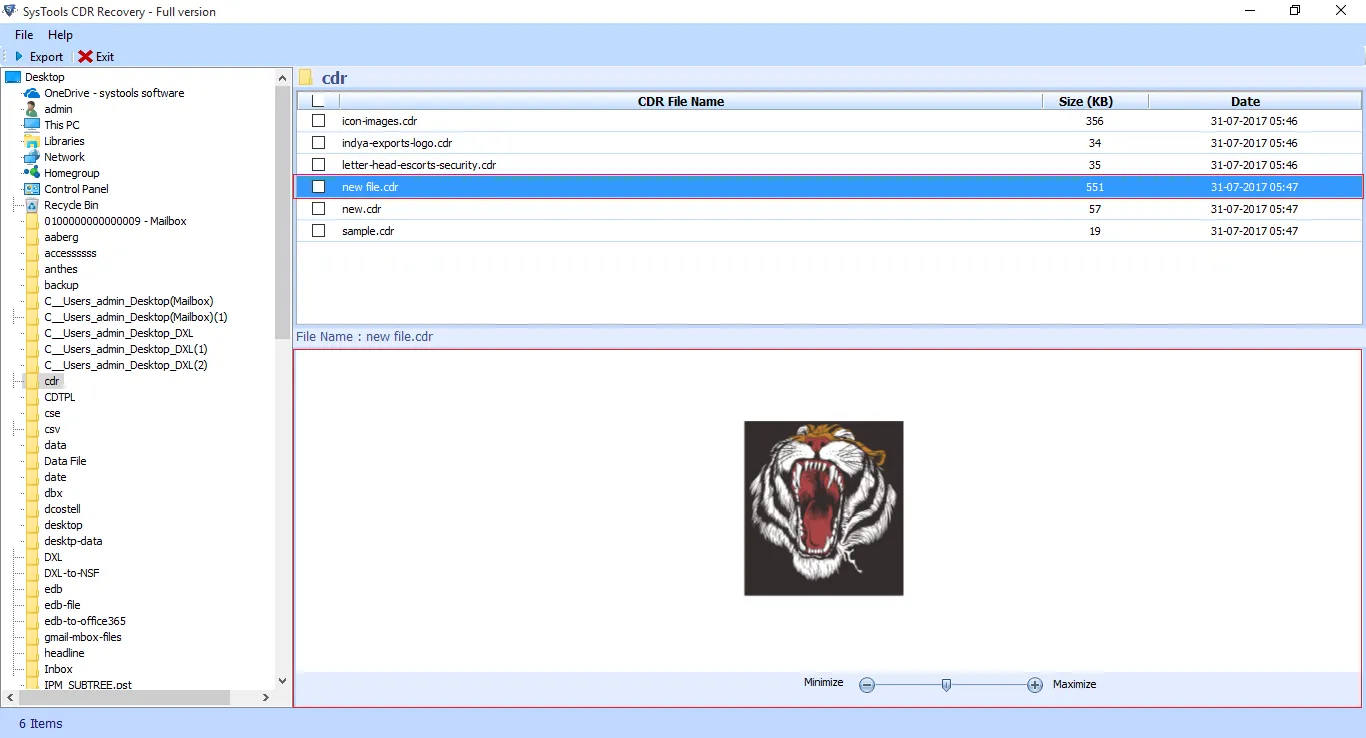 - Provides an option to export recovered data into CDR format, ensuring the integrity of the data and maintaining the original file structure.