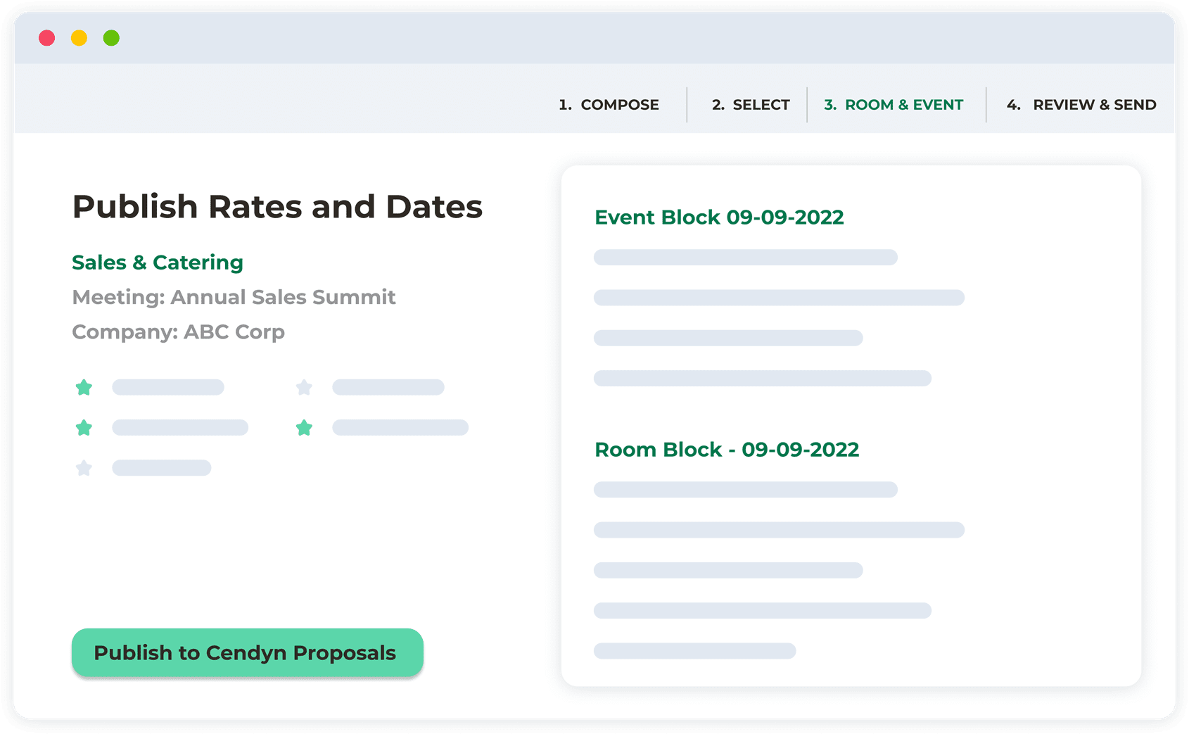 - Automatically embed food and beverage details with Cendyn Catering