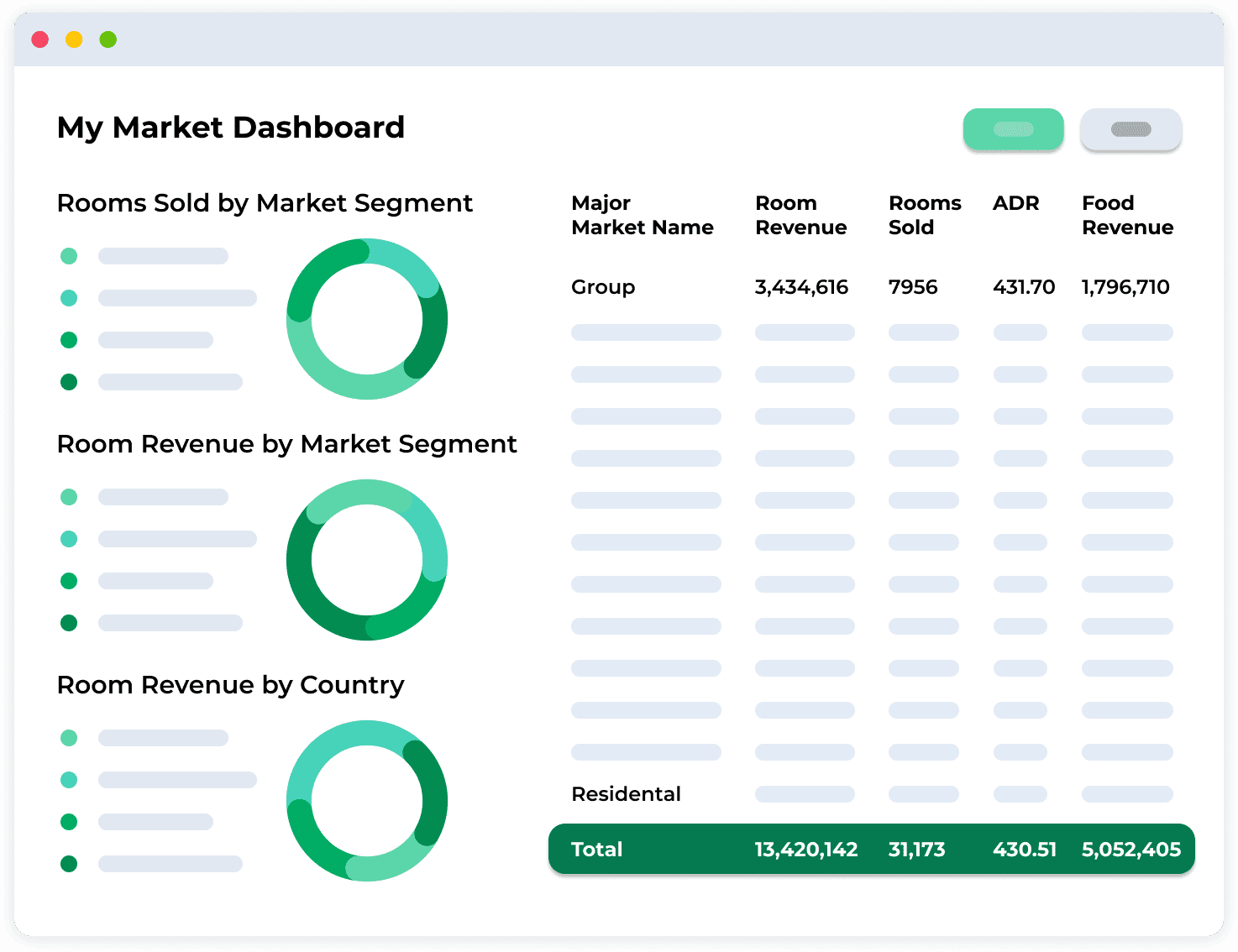 - Comprehensive view of ancillary and room revenue for revenue managers
