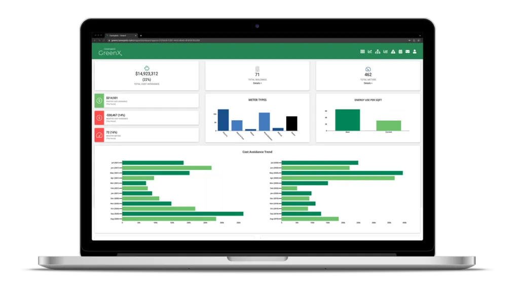 Cenergistic GreenX is an energy management platform providing real-time analytics, anomaly alerts, and actionable insights to optimize facility utility usage.