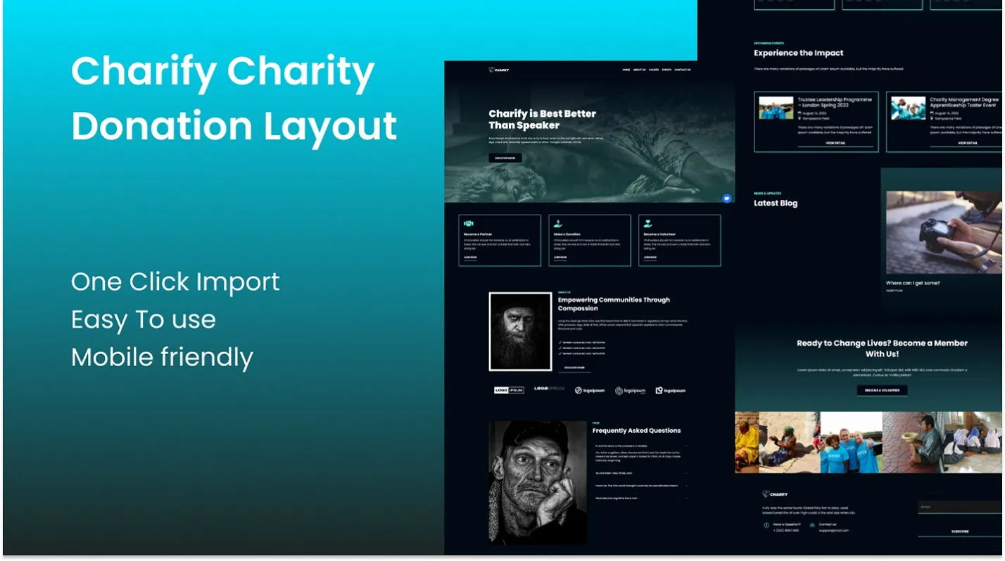 - Donation-Focused Design: Highlights causes and encourages contributions with clear CTAs and structured layouts 2.