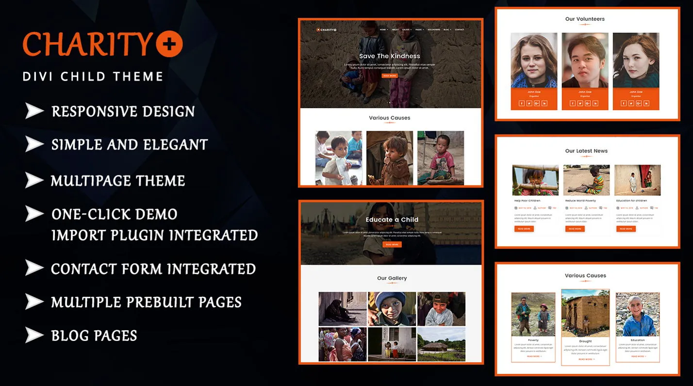 Charitypluz is modern and elegant Multi Page Divi Child Theme which is suitable for charity, charity foundation, NGO, nonprofit organization, church, crowd funding, donation, foundation, fundraising and general categories.
