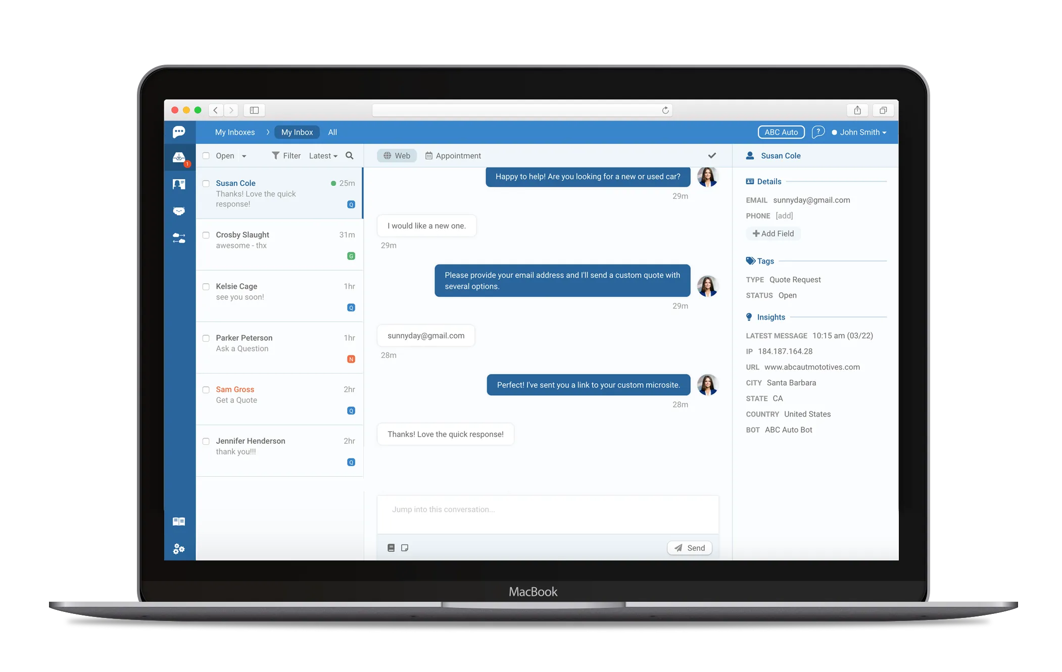 - Multichannel Communication: Supports communication via website chat, SMS, and Facebook Messenger to reach customers where they are most active.