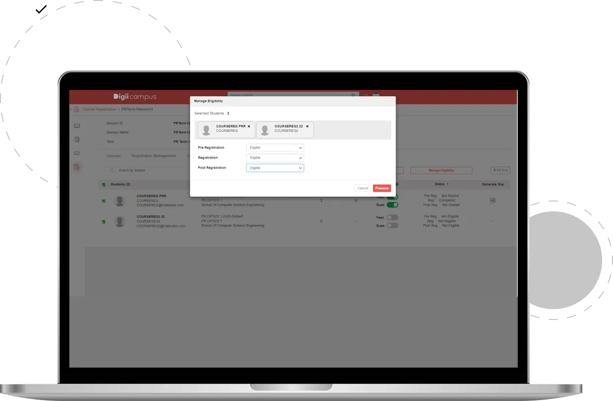 The Choice-Based Course Registration system redefines the learning approach by offering a flexible and student-centric teaching-learning system. It empowers students to chart their own learning journey, allowing them to build a bouquet of skills by selecting courses that align with their interests and career goals. This system transforms higher education by streamlining operations and enhancing the overall learning experience for students. Key features include registration management, poll configuration, and the ability to sort courses based on their status, providing a dynamic and responsive registration process.