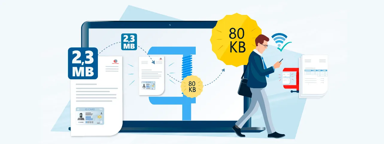 - Automation: Automatically compresses documents during scanning or archiving.