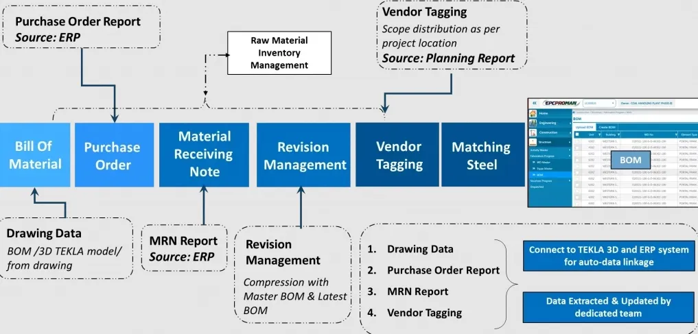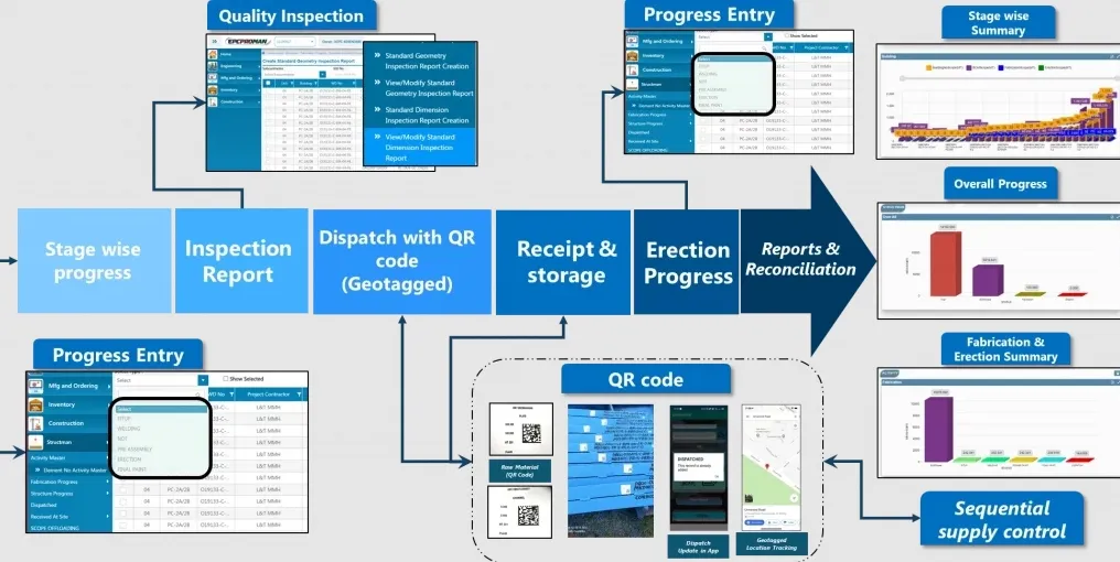 Advanced Construction Management Software for End-to-End Tracking of Civil, Structural Material Control, Fabrication, and Erection Activities on Site.