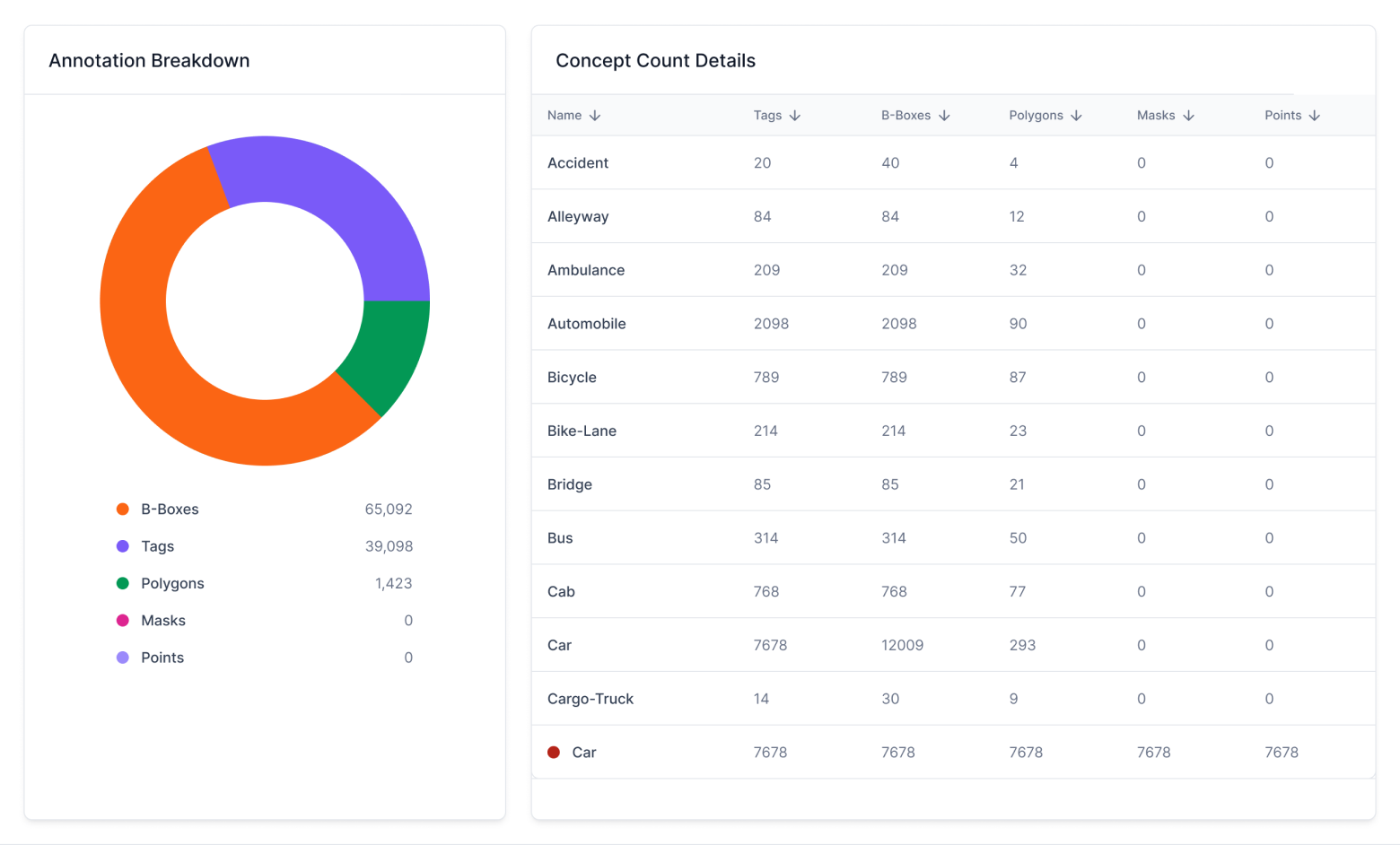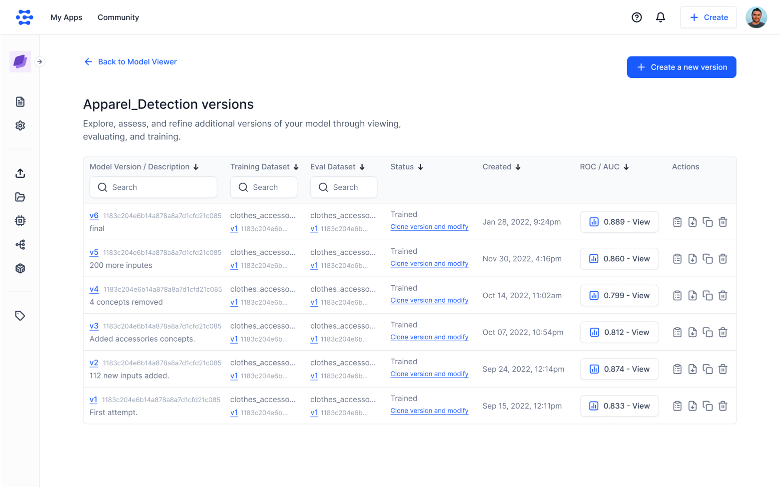 - Store data, annotations, datasets, models, model evaluations, modules, predictions, vectors, and workflows.