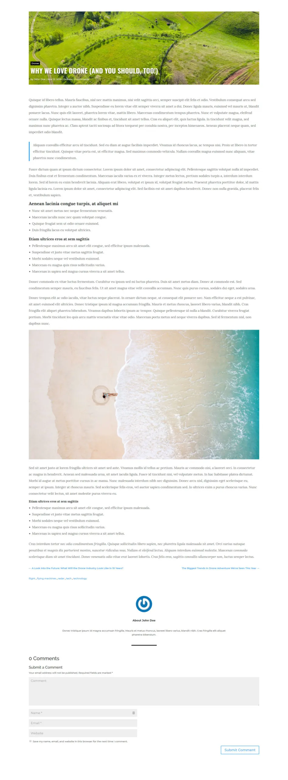 A stylish minimal and clean post layout with readability optimized title, headings, and post content that increases readers’ focus and engagement. Plus, well organized recent post area, tags, author bio, and comment section.