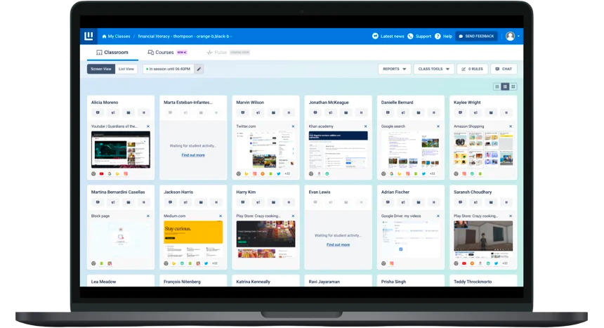 Cloud-based classroom management for K-12, giving teachers real-time visibility and control over student online activity, web access, and engagement.