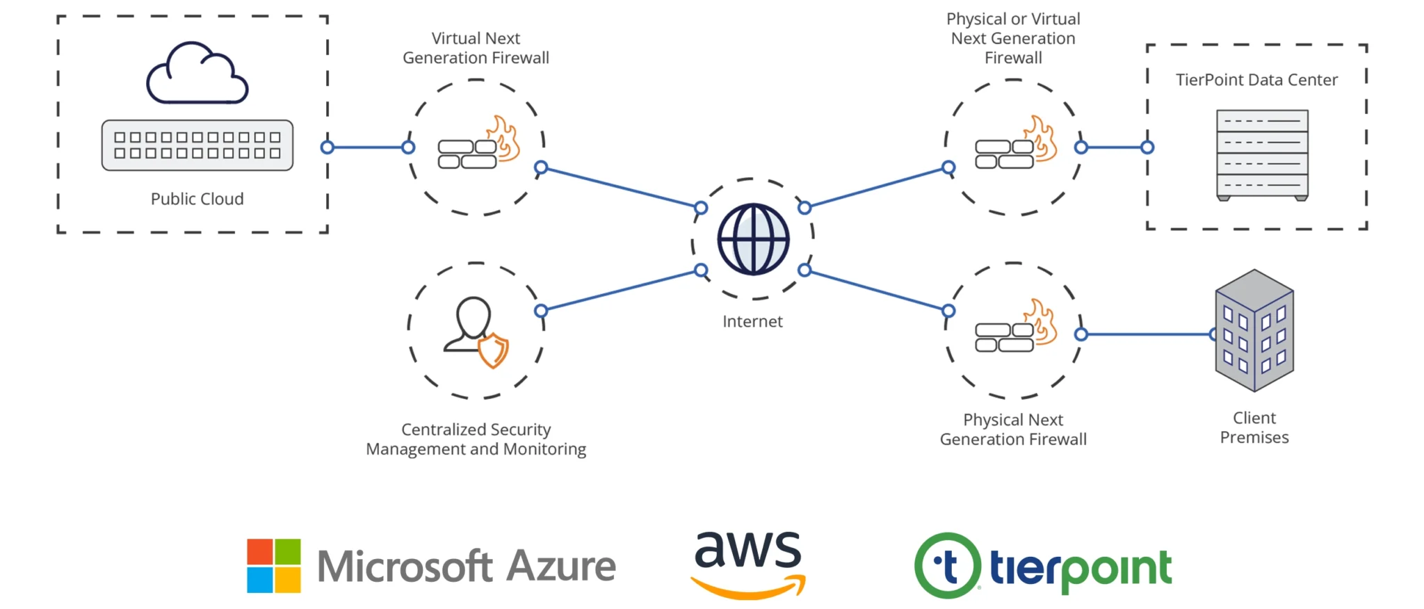 TierPoint’s industry-leading CleanIP NGFW service provides full-feature-set enabled next-generation firewall management and monitoring. All within colocation, DRaaS, on-premises, hosted private cloud, multitenant cloud, and public cloud (Azure and AWS). Whether you need policy enforcement and enterprise visibility, want the full protection of a next-generation firewall, or are ready for the benefits of an integrated firewall and intrusion prevention system (IPS), TierPoint CleanIP NGFW lets you secure your enterprise. Take full advantage of NGFW capabilities such as intrusion detection and protection (IDS/IPS), SSL traffic inspection, content and URL filtering, multi-factor authentication (MFA) VPN access, and network anti-virus, botnet, IP reputation, and application protection.
