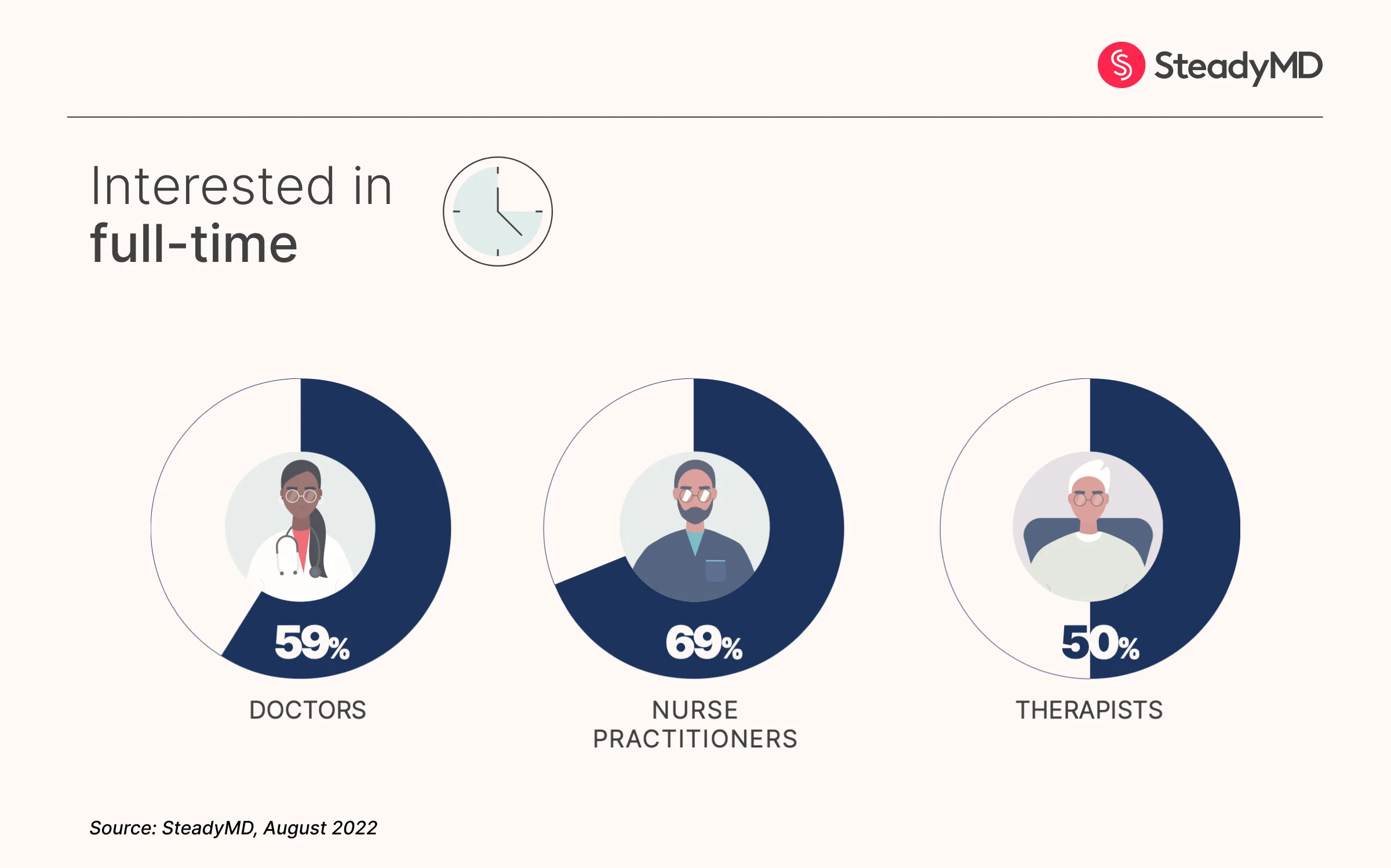 SteadyMD’s Clinician Workforce provides telehealth-experienced, board-certified clinicians across all 50 states, enabling healthcare organizations to meet patient demand with scalable, high-quality virtual care. The network includes doctors, nurses, therapists, and specialists available 24/7 to support diverse care needs.