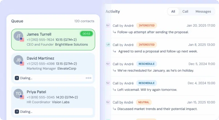 - AI-Powered Calling: Utilizes AI voice agents, AI dialers, and AI conversation intelligence to automate tasks, analyze calls, and improve agent performance.