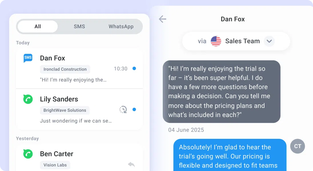 - Extensive Integrations: Connects with over 100 popular CRMs, helpdesks, and other business tools, with options for custom workflows via Zapier, Make, or its own builder.