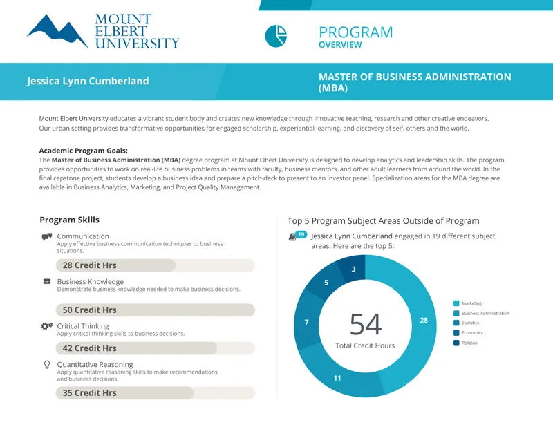 - **Increase Retention by Showing Progress Towards Goals: **Encourage learners to complete their degree by showing their progress towards their goal. A Parchment CLR grows with a learner and gives them a finish line they can reach for.