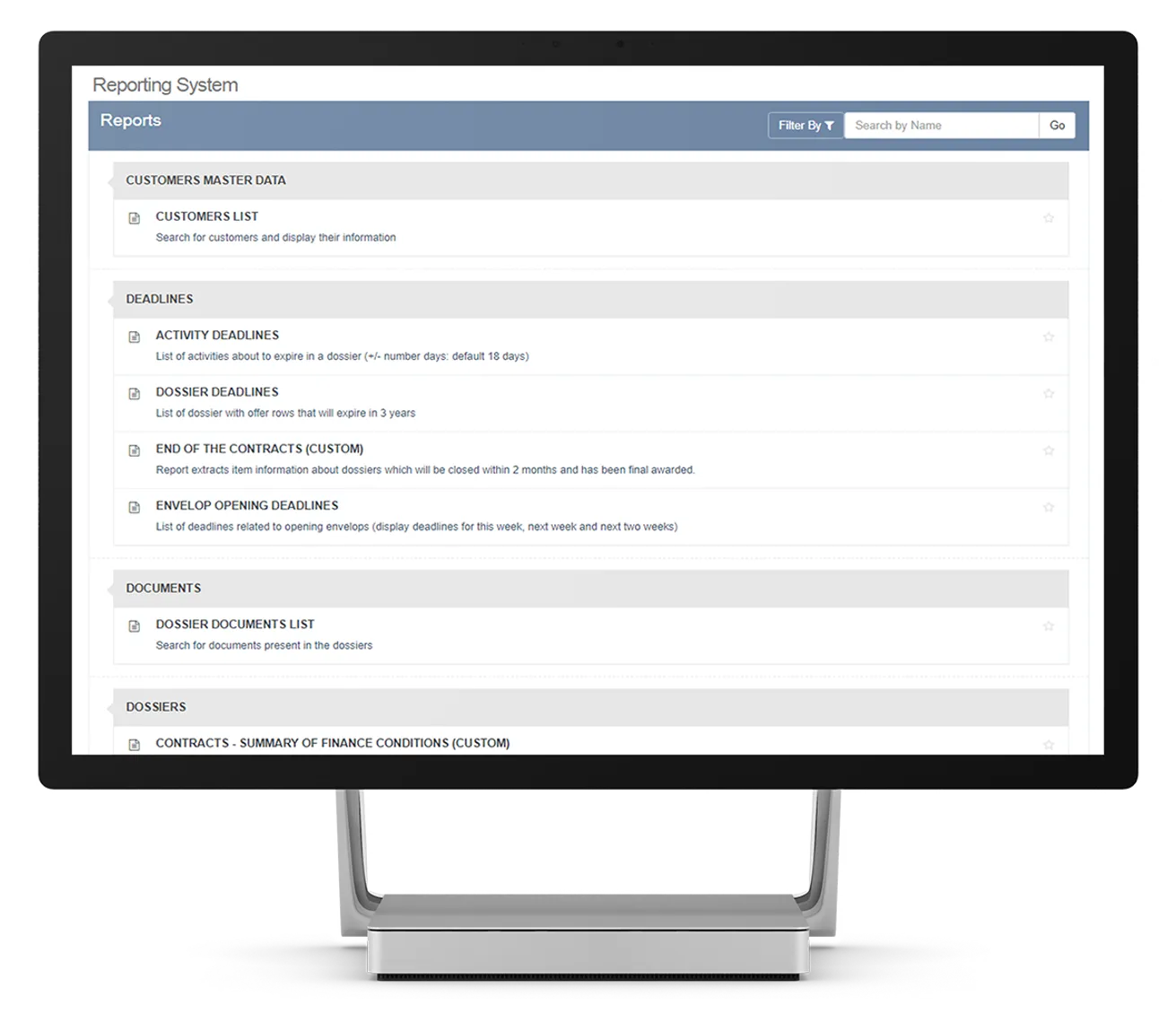 Reporting software for fast, customizable generation and management of business tender and offer activity reports with advanced filtering.