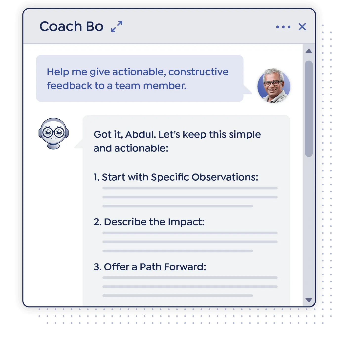 Imagine having a dedicated mentor, coach, and confidant available 24/7 for every single member of your team. That’s Coach Bo, the AI-powered ally that evolves with your team’s needs.
