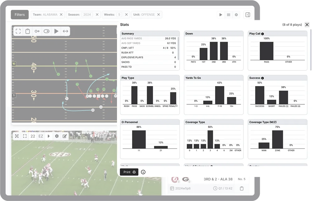 Quickly break down plays, spot trends and mismatches, and better prepare your staff and players for game day.