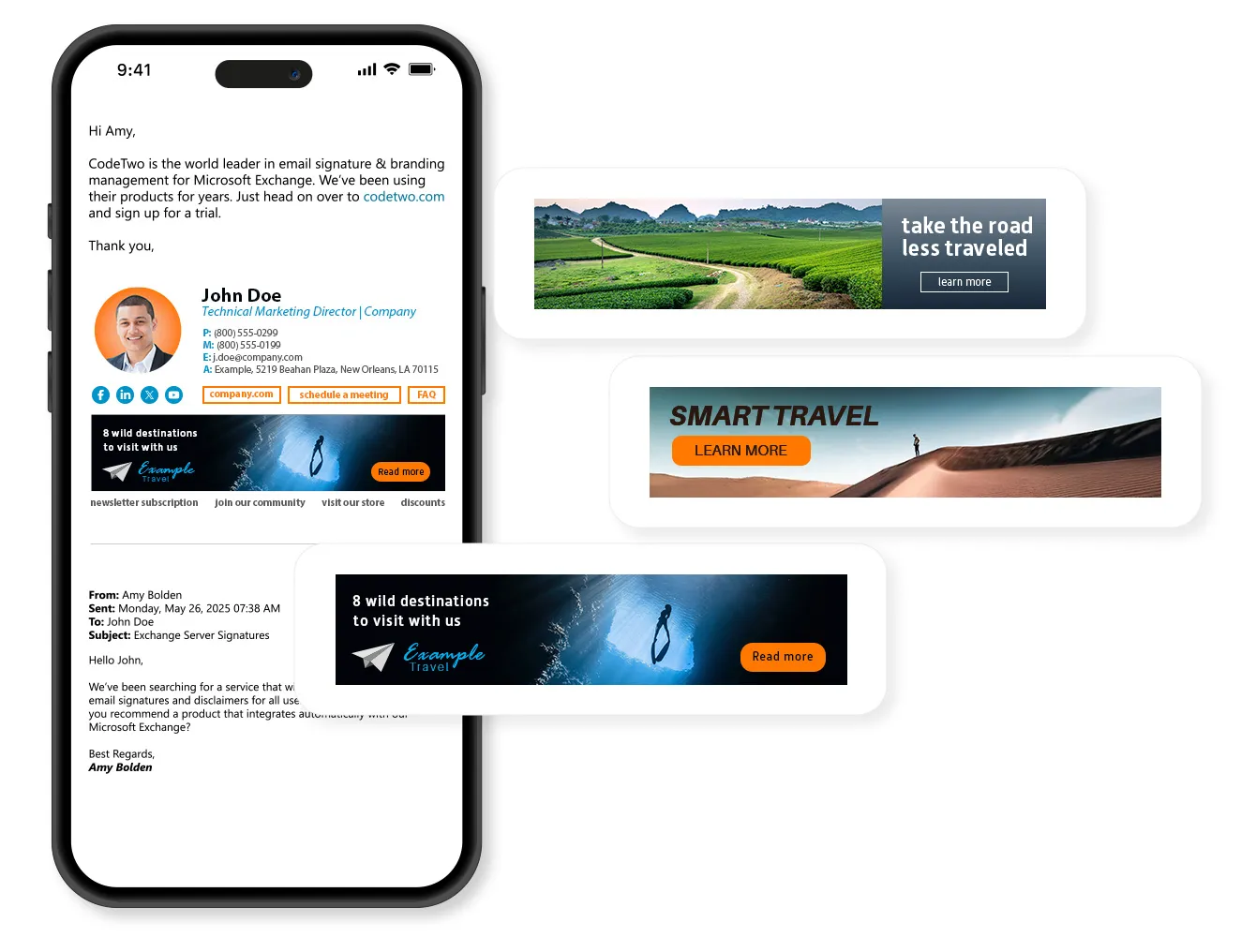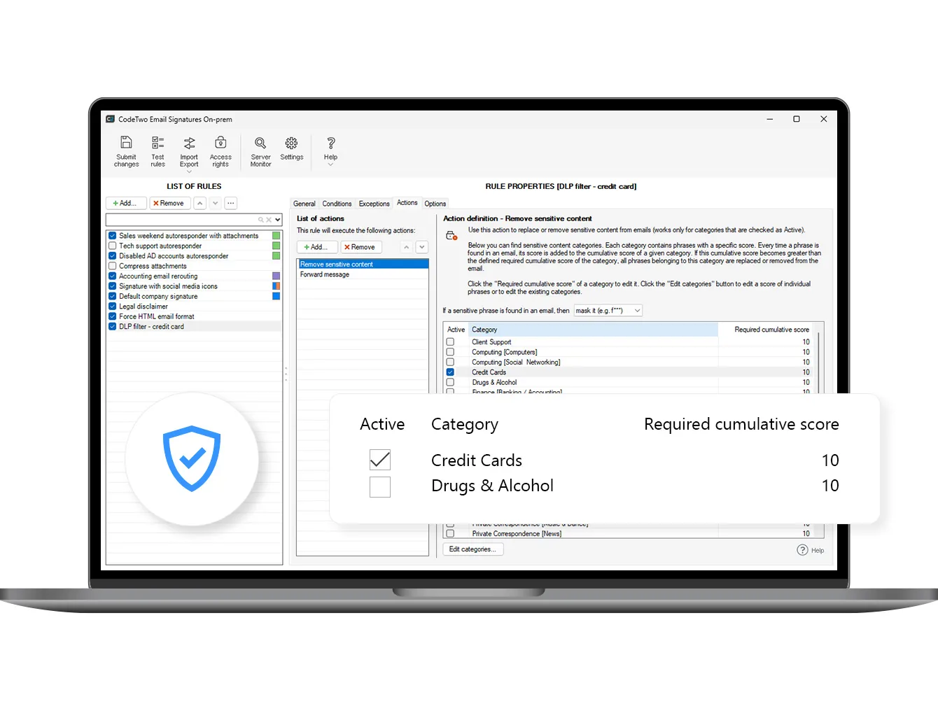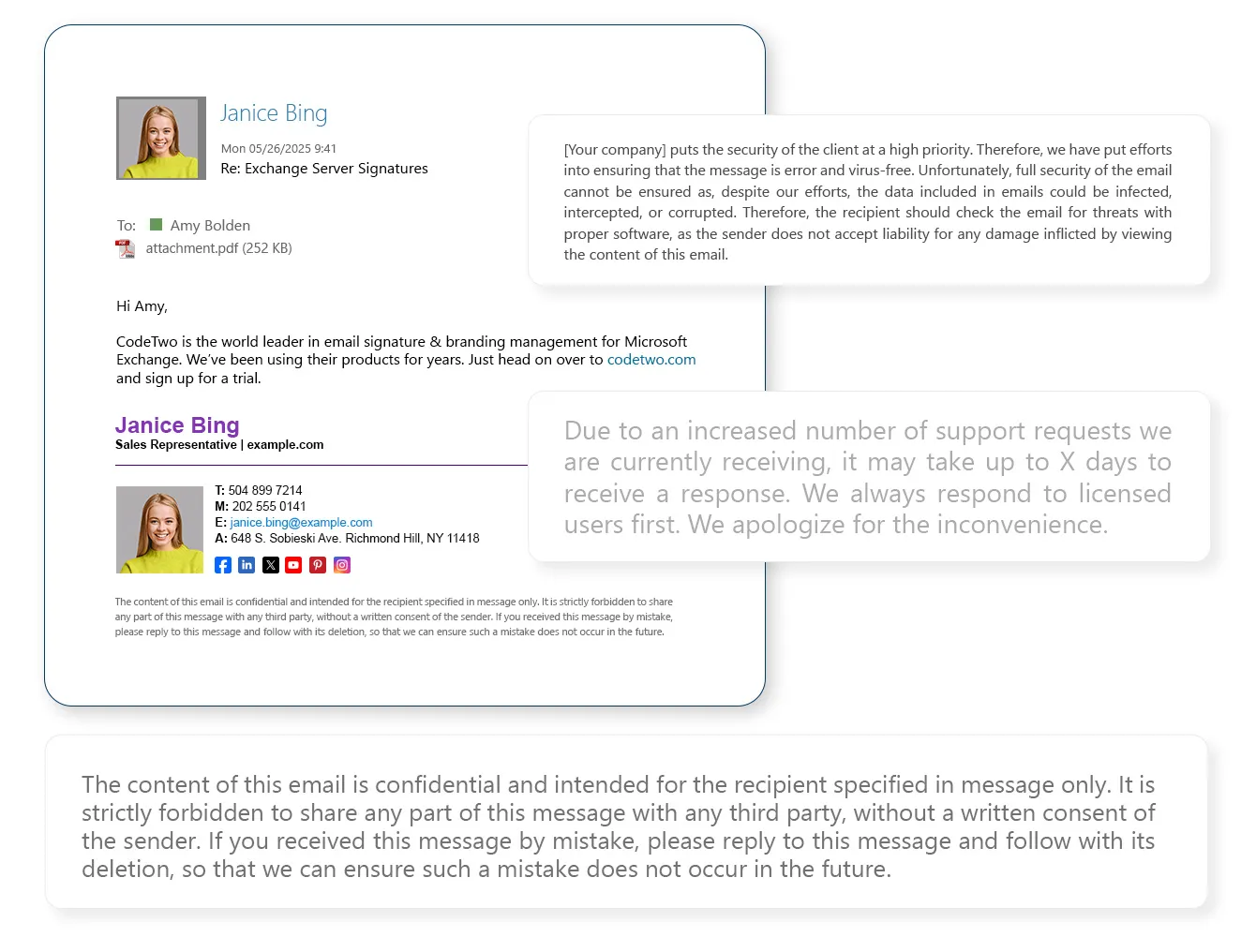 CodeTwo Email Signatures On‑Prem is an on‑premises software solution designed for organizations running Microsoft Exchange Server. It enables centralized creation, management, and automatic insertion of email signatures and disclaimers directly within the Exchange mail flow. Signatures are applied server-side, ensuring consistency and compliance without relying on client-side configuration or user behavior. The software operates entirely within the organization’s infrastructure.