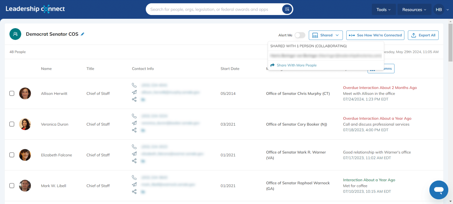 Collab by Leadership Connect is a cloud-based collaboration module that enables teams to organize, share, and manage stakeholder engagement activities within the Leadership Connect platform. It centralizes contact records, notes, assignments, and relationship tracking related to government, corporate, and nonprofit leaders. The solution is designed to support coordinated outreach, institutional knowledge retention, and cross-team visibility. By integrating collaboration tools directly with leadership intelligence data, it allows organizations to manage interactions and responsibilities within a structured environment.
