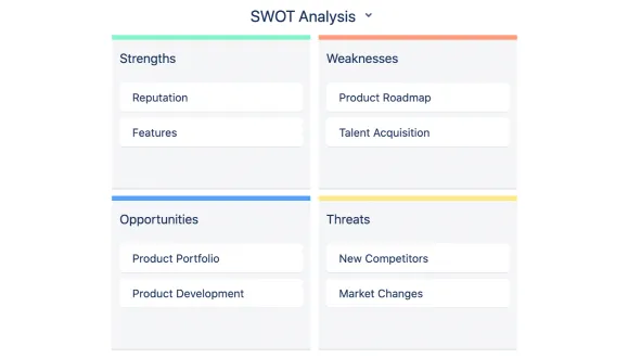 Use a variety of agile and business board frameworks including Project Retrospective, Product Roadmap and SWOT Analysis.