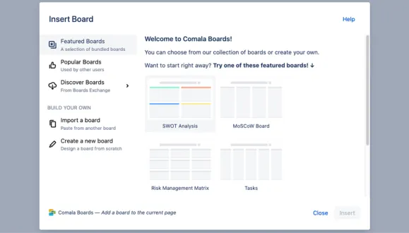- Create product roadmaps or project retrospectives Use Comala Boards for: Brainstorming, Planning, Strategic Development, Project Management, Agile Development. The Appfire platform features dozens of top-selling apps that help teams worldwide solve big challenges.
