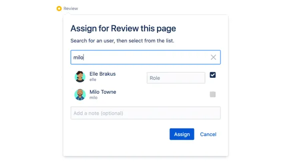 Approvers are assigned right inside of Confluence, using the simple UI