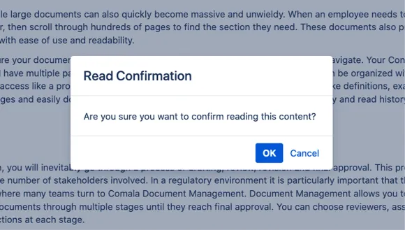 Use the read confirmations feature to assign users to read a page, and track acknowledgments