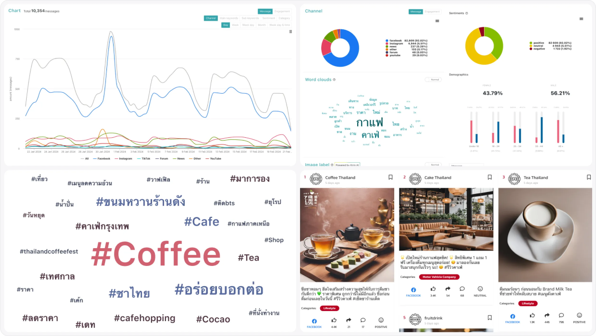- Displays selected social media data on large screens for easy comparison of consumer opinions on brands, products, and competitors, aiding strategic planning.