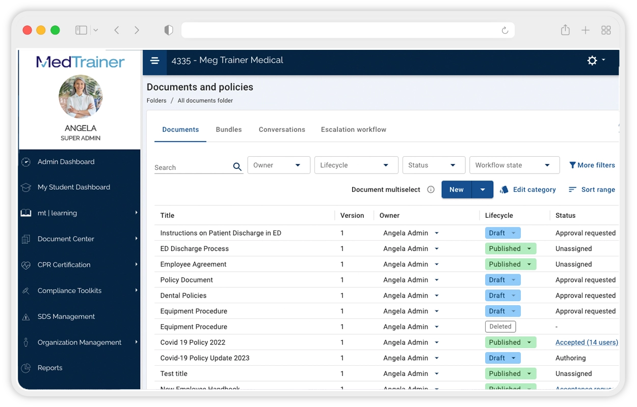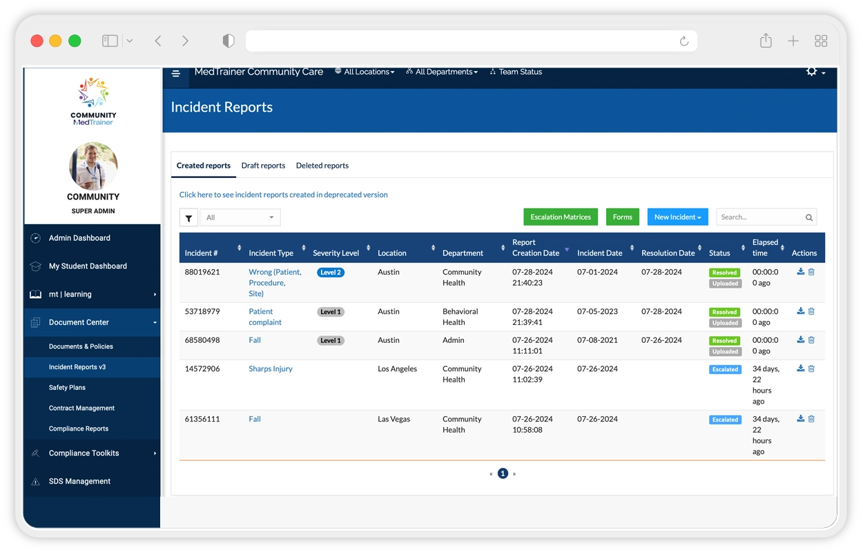 MedTrainer Compliance is a software platform designed to help healthcare organizations manage and document compliance activities across regulatory, operational, and organizational requirements. It provides a centralized system to organize compliance obligations, track completion, and maintain records needed for oversight and audits. The platform integrates multiple compliance‑related functions, including policy management, training compliance, credential oversight, and issue tracking. It is structured to give compliance teams visibility into organizational risk areas and compliance status across departments and facilities. MedTrainer Compliance is intended to reduce fragmented compliance processes and manual documentation. It serves as a system of record for compliance activities and supports consistent governance practices within healthcare environments.