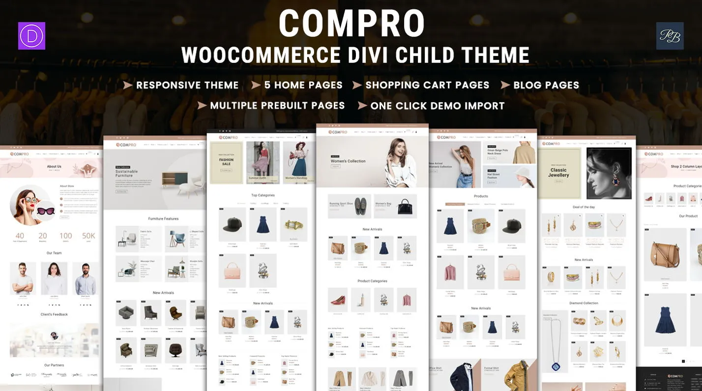 ComPro is a stylish WooCommerce Divi child theme designed for fashion, lifestyle, and modern online stores. With clean layouts, responsive design, and seamless Divi Builder integration, it helps you launch a professional e-commerce site quickly and beautifully.