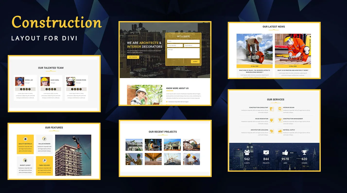 Professional Divi layout for construction websites with responsive design and customizable sections.