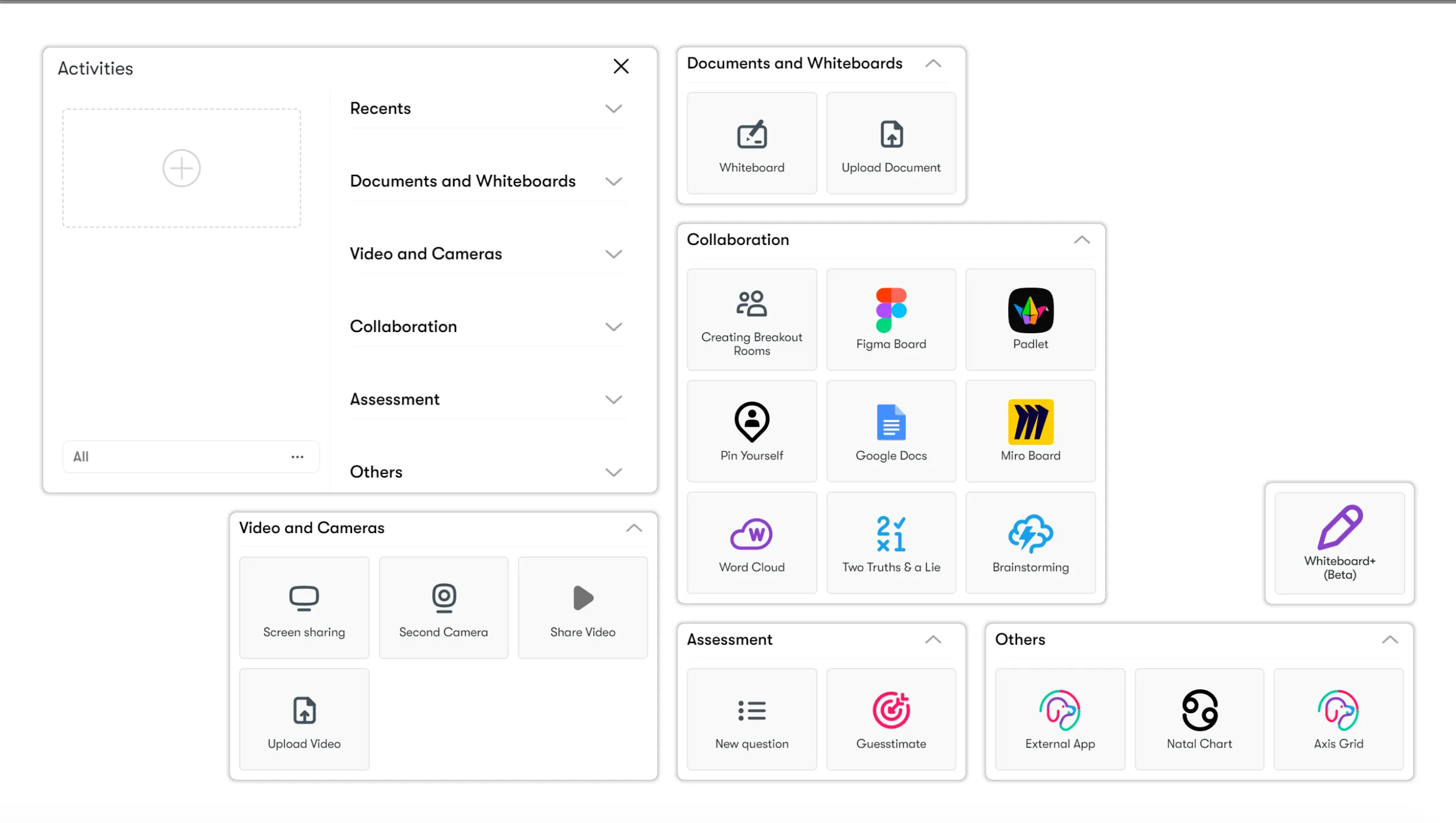 - **Structured Session Planner: **Allows instructors to prepare and organize lesson flows, upload teaching materials, and outline activity sequences for cohesive session delivery.