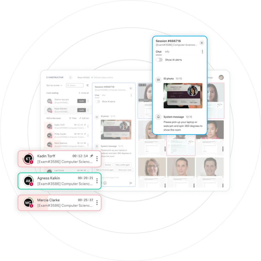 - **Identity Verification: **Biometric identity checks via facial recognition and document verification ensure the correct candidate participates in the exam.