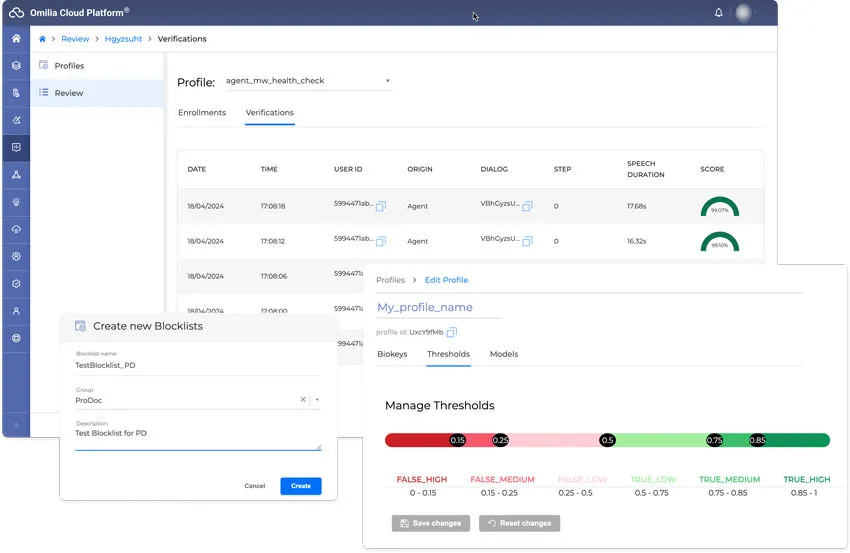 - Fraudulent Enrollment Detection: Compares new enrollments against existing voiceprints to detect suspicious or duplicate enrollments, preventing fraudsters from creating fraudulent accounts.