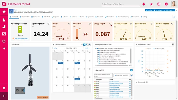 Automate value creation with data-driven processes Elements for IoT enables you to automate, accelerate, and standardize business processes involving industrial assets. Operational data allows you to efficiently control value-adding activities, eliminating delays from manual intermediate steps or system breaks. This increases your competitiveness through improved responsiveness, increased throughput, and savings in indirect processes. Our software also provides a complete overview of your value streams, which supports in-depth analysis, benchmarks, and the standardization of methods and workflows. Your management benefits from meaningful KPIs and standardized reporting.