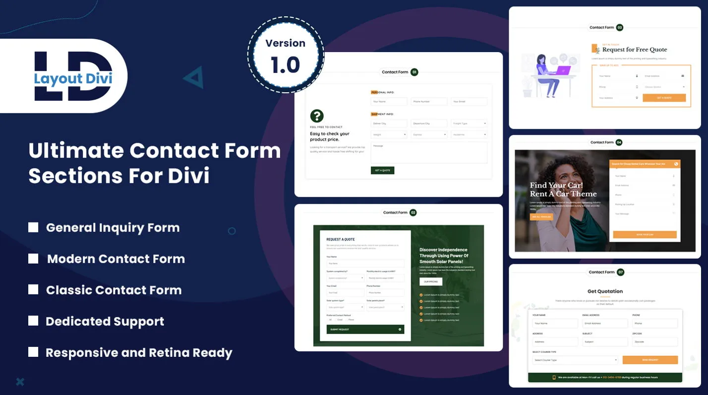 - 10+ Unique Layouts: A wide variety of contact form designs for different industries and styles.