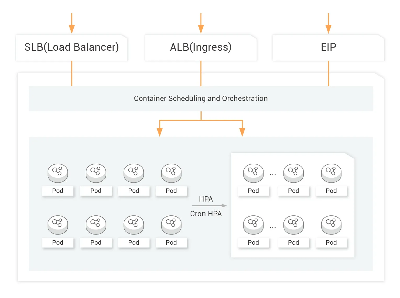 Simplified Cluster Management Eliminates the need to maintain nodes and resource pools, reduces O&M costs, and allows you to focus on application development Rich Elastic Container Instance-Based Pod features Provides configurable pod specifications and supports EIP mounting, vGPU-accelerated instances, preemptible instances, and snapshots Highly Elastic Serverless Architecture Adopts a highly elastic Serverless architecture to deal with user traffic spikes and supports up to 10,000 pods per cluster Rich Kubernetes Features Supports Kubernetes-native features (such as Services, Ingresses, Deployments, Jobs, CRDs, and Helm) and provides a streamlined platform for application lifecycle management Per-Usage and Per-Second Billing Bills resources based on actual usage (only when the instances are in use), helping reduce expenses
