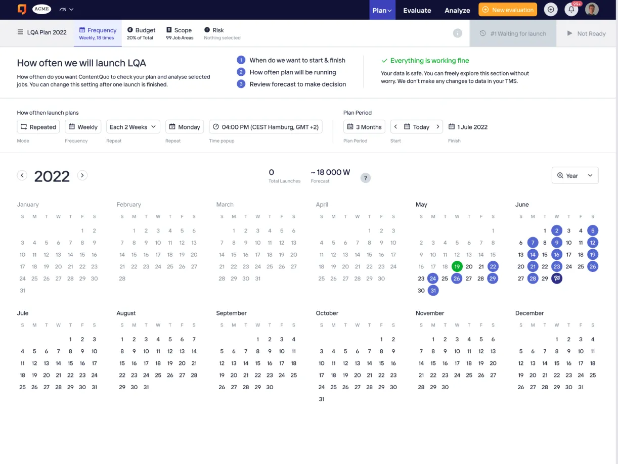 - **Never miss the right day for LQA: **Have a daily cadence or a weekly run or a monthly cycle? Never forget to start quality evaluations anymore - our scheduler takes care of it.
