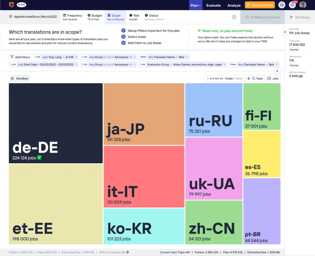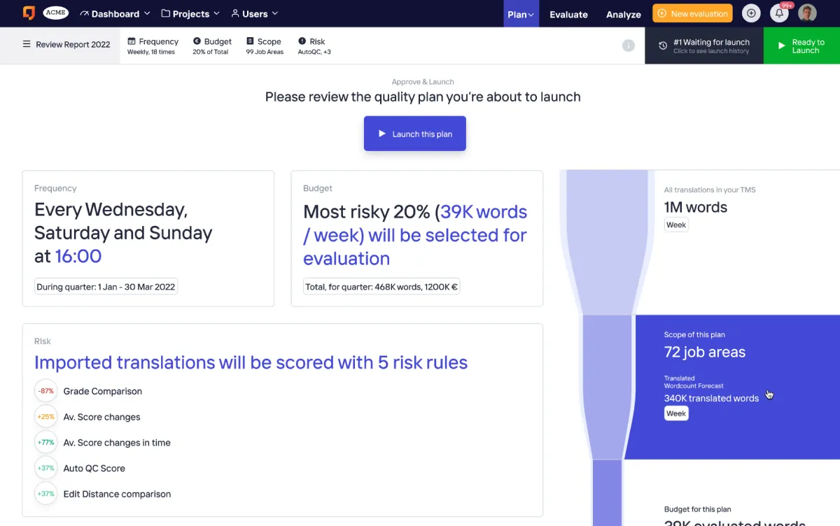 ContentQuo Plan empowers localization teams and language service providers to reduce translation risks, enhance vendor performance, and optimize machine translation quality through a data-driven approach.
