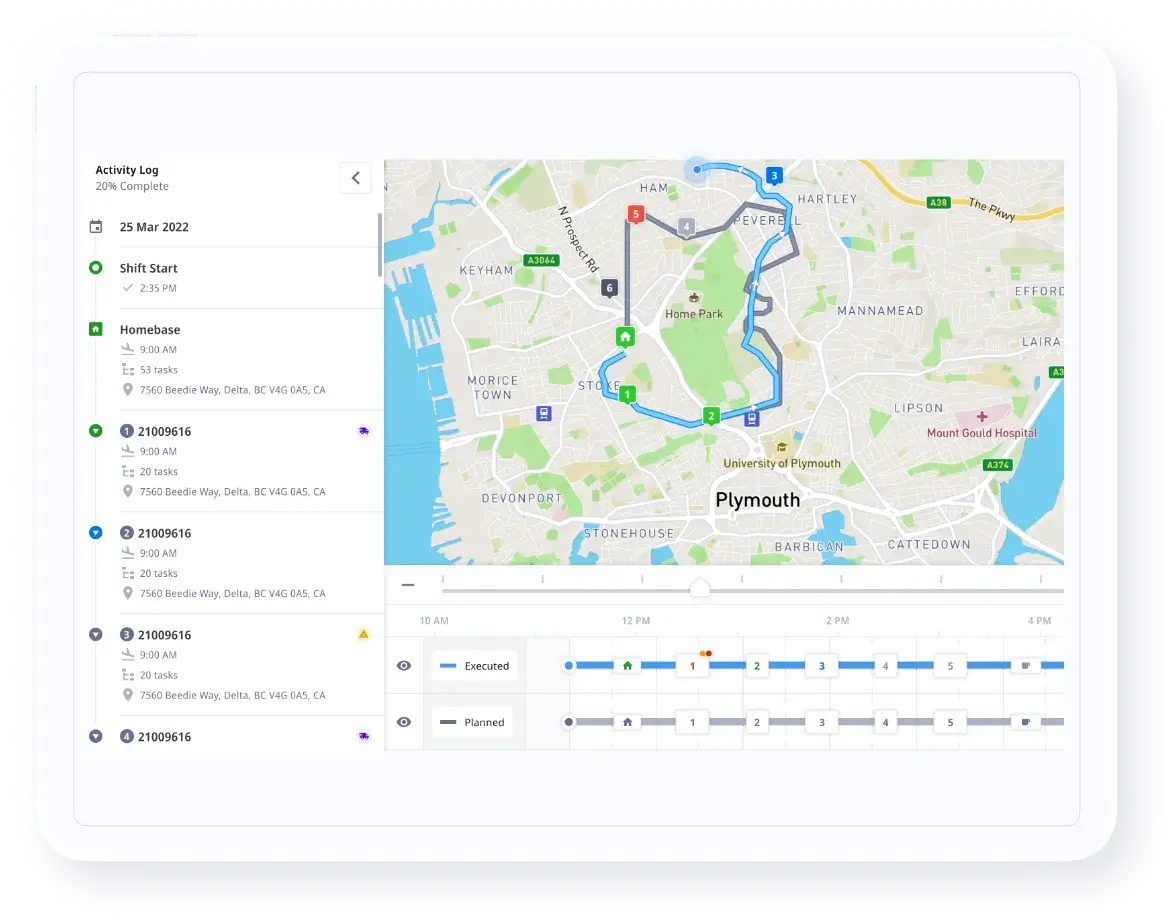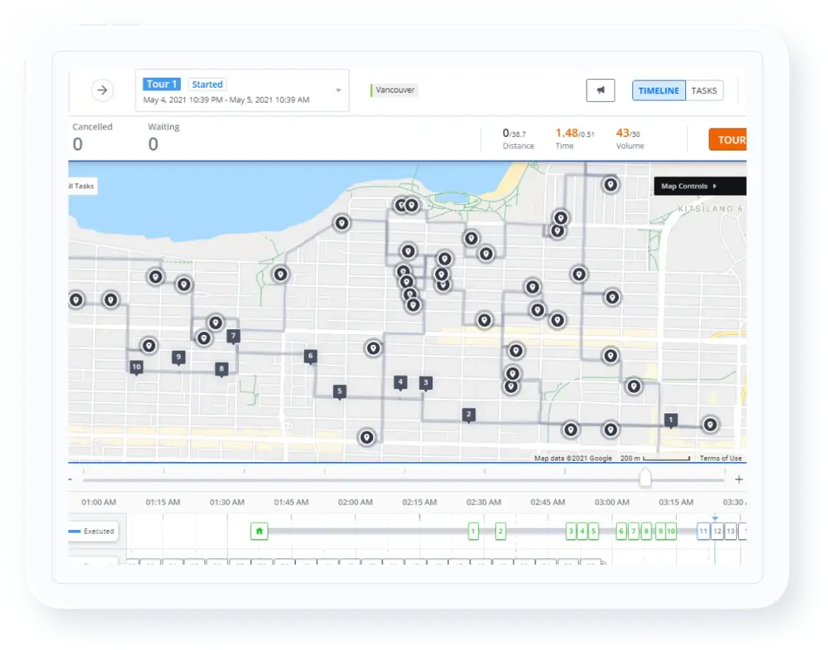 Enjoy enhanced visibility from origin to destination with a feature-rich control tower dashboard, driver application, and customer-facing tracking interface.