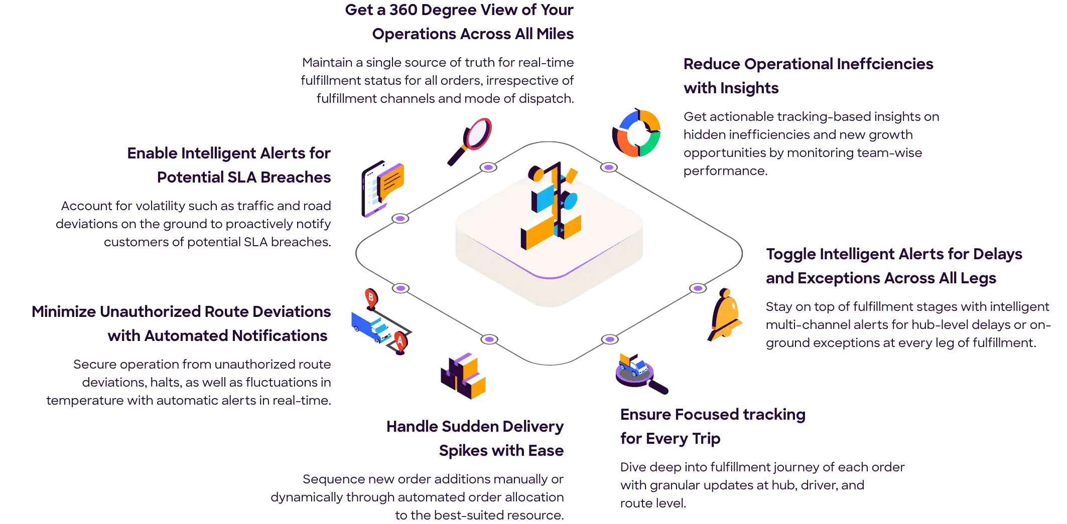 Account for volatility such as traffic and road deviations on the ground to proactively notify customers of potential SLA breaches.