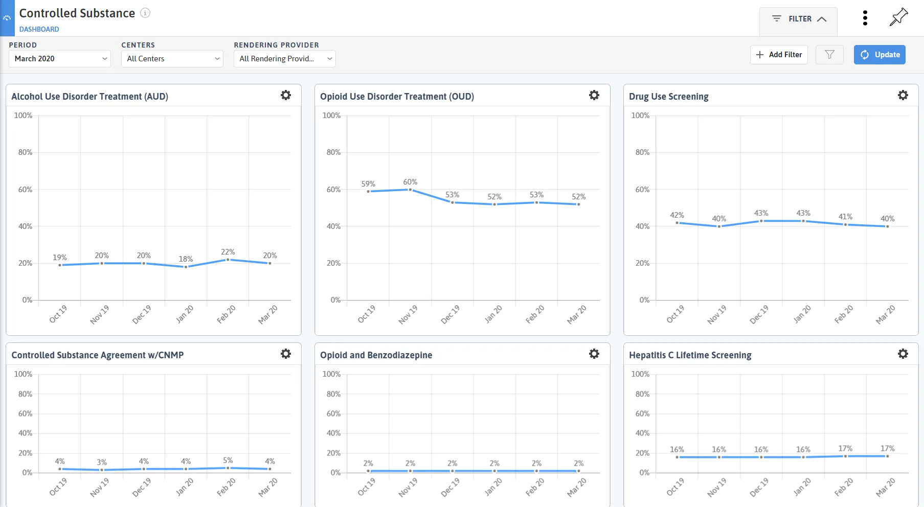 Azara Controlled Substance Module provides tools to efficiently manage patients in treatment for substance use disorder, those at risk for developing disorders, and those with chronic pain through integrated registries, measures, and dashboards.