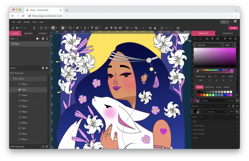Web-based vector app for design hobbyists and aspiring pros.