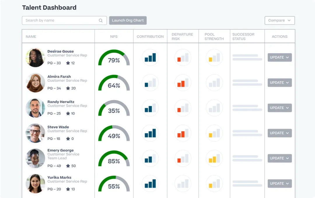 Proactively identify high-potential employees to develop leaders at all levels by automatically assessing leadership qualities, tracking career patterns of successful leaders, and prescribing what development works best.