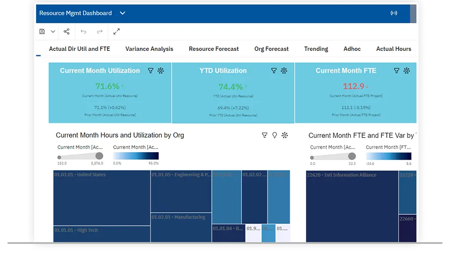 Utilize Real-Time Insights for Strategic Decisions - Access real-time data for a complete view of planned vs. used resources - Generate multiple budget versions to analyze and grasp diverse scenarios for strategic decision-making - Utilize analysis to inform future budgets and more accurate forecasts for increased performance