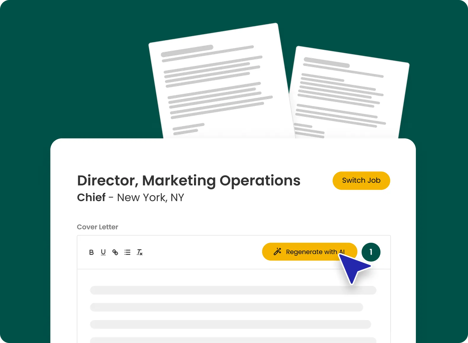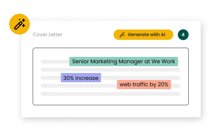 Generate compelling, personalized cover letters in just seconds with AI to start enhancing your job applications.