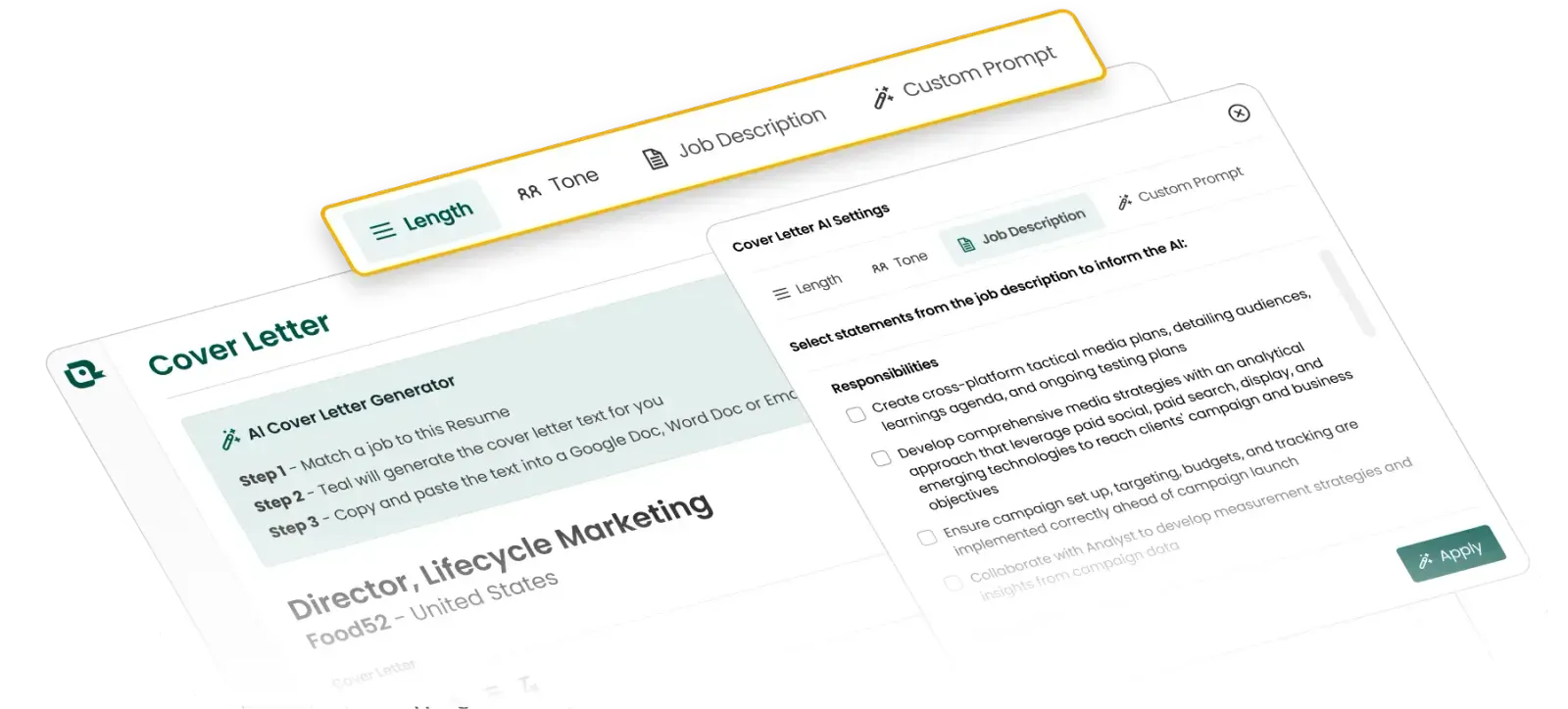 - **Give your application more polish: **A resume adds credibility. A well-written cover letter adds perspective. And cover letters still matter, especially when they speak directly to the role. The AI Cover Letter Writer gives you a strong draft in less time, so you can focus on refining the language, not figuring out what to say. You only need a few minutes. That's the point.