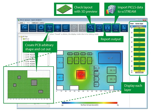 Cradle CFD PICLS is a tool for real-time thermal simulation of printed circuit boards.